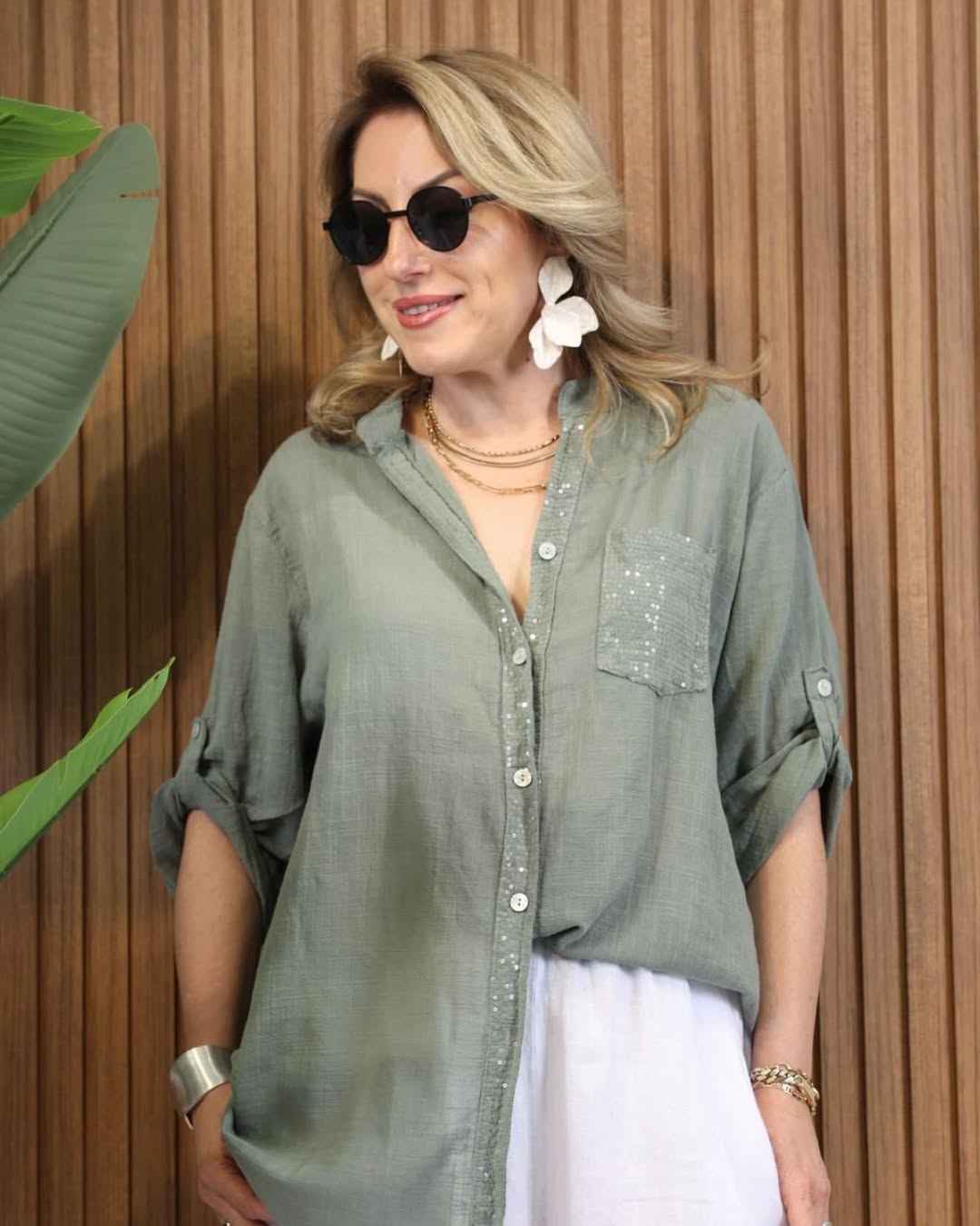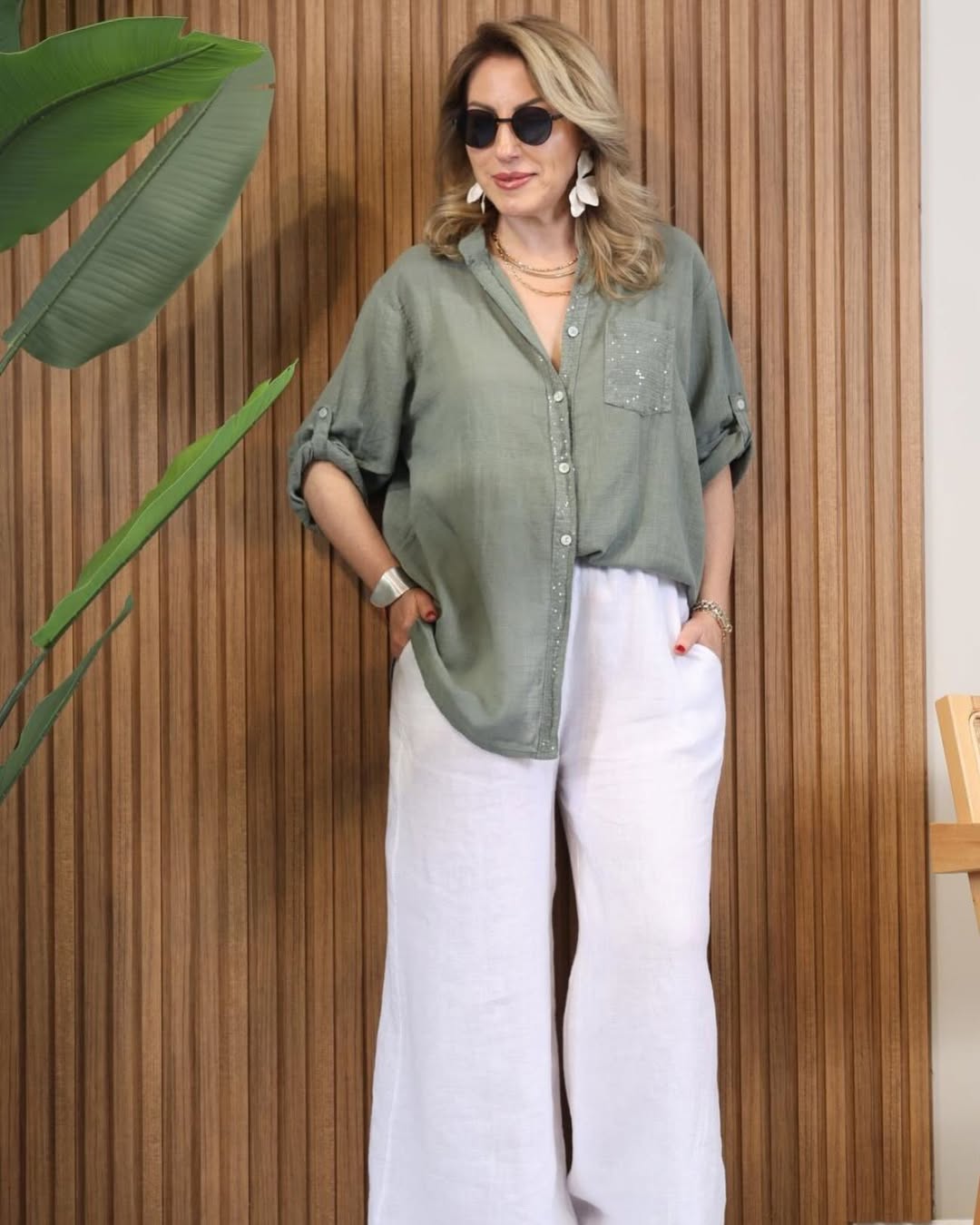شومیز لینن اورجینال رنگبندی:سبز،طوسی،خاکی فری سایز تا ۵۲ دور سینه ۱۲۰ دوربازو۴۲ قدشومیز۷۵